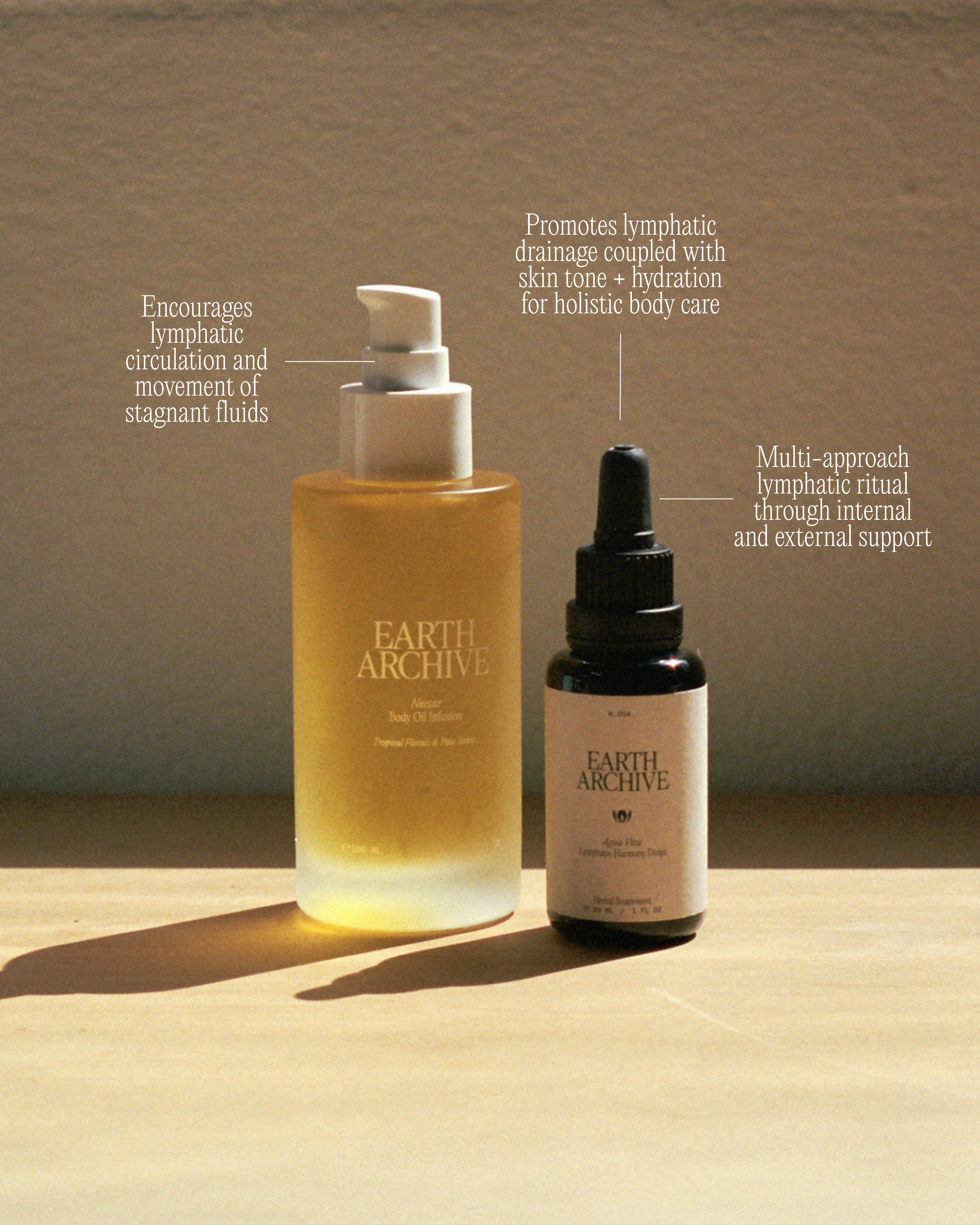 - Supports lymphatic flow through both internal herbal support with Agua Viva and external self-massage practices with Nectar for multiple pathways of care
